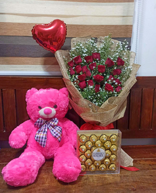 You can add tasty Ferrero Rocher Chocolates, a cute teddy bear, and a cake upon checkout!