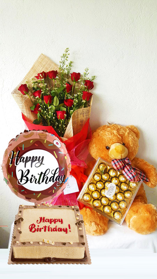 You can add tasty Ferrero Rocher Chocolates, a cute teddy bear, and a cake upon checkout!