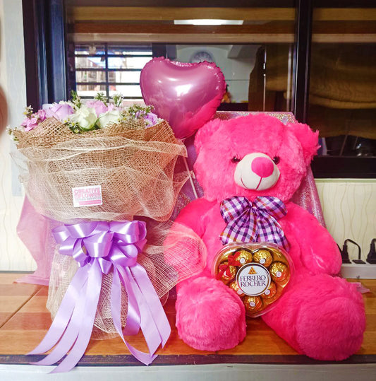 You can add tasty Ferrero Rocher Chocolates, a cute teddy bear, and a cake upon checkout!