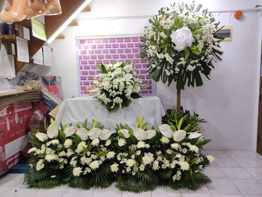 Set of Funeral flowers including: Standees, Top coffin flowers, Below coffin flowers with or without backdrop