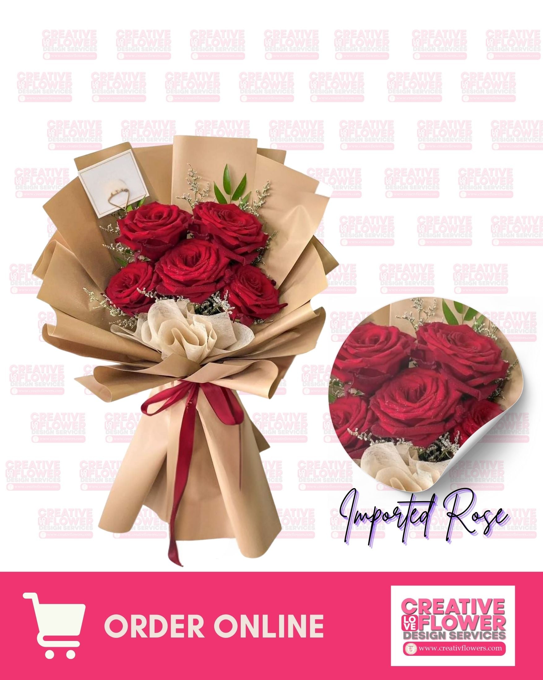 Elegant simplicity meets romance with this stunning arrangement of 5 imported china roses. Each stem is carefully selected and presented in a naturally minimalist style that lets the beauty of the flowers speak for itself. Perfect for expressing your feelings without unnecessary fuss—just pure, timeless elegance. Ideal for anniversaries, special occasions, or simply brightening someone's day.