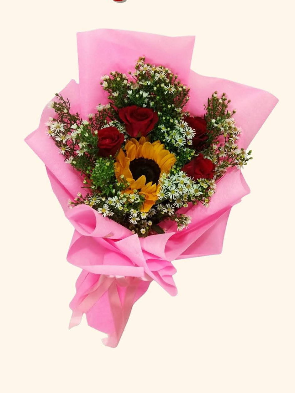 4 stem of roses with center sunflower
