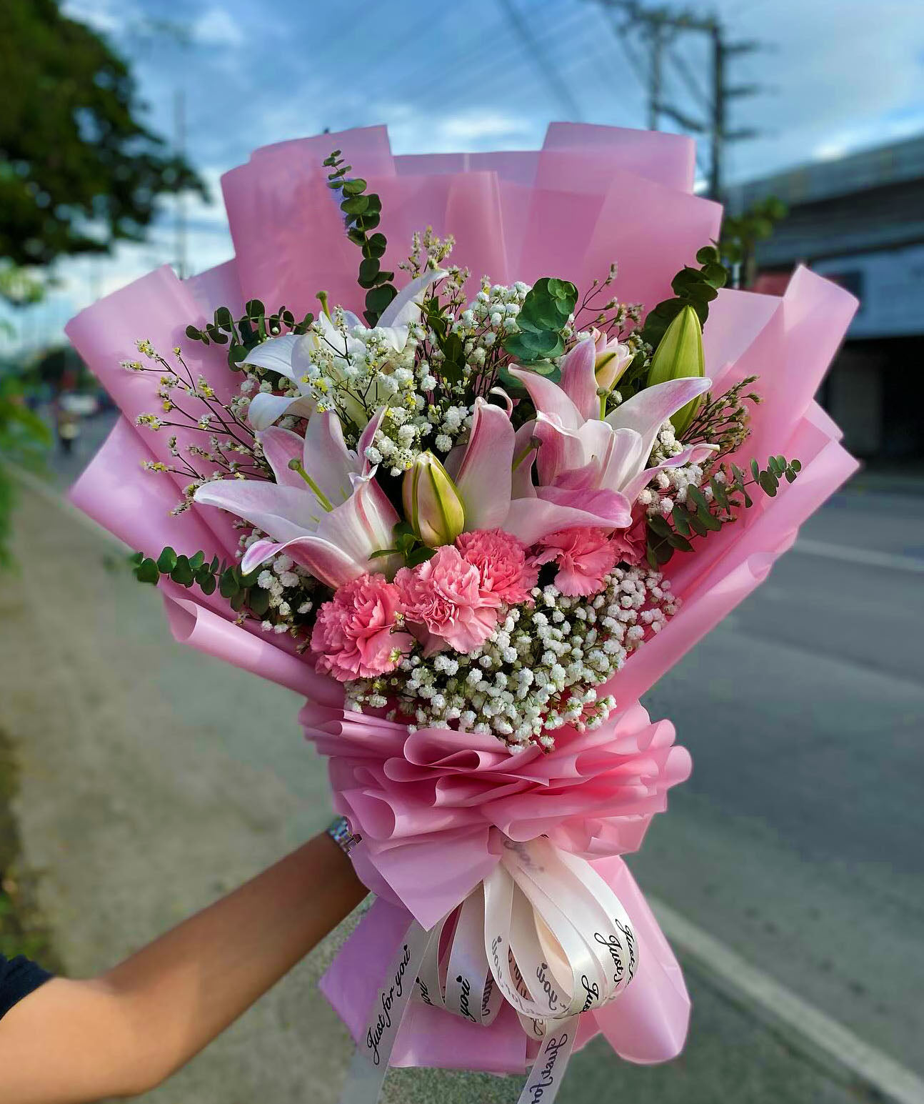 Celebrate love with this enchanting bouquet featuring vibrant stargazer lilies paired with delicate pink tulips. The striking combination of bold blooms and soft petals creates a romantic arrangement perfect for expressing your deepest feelings. Each stem is carefully selected to bring elegance and warmth to any space, making this bouquet an ideal gift for someone special.