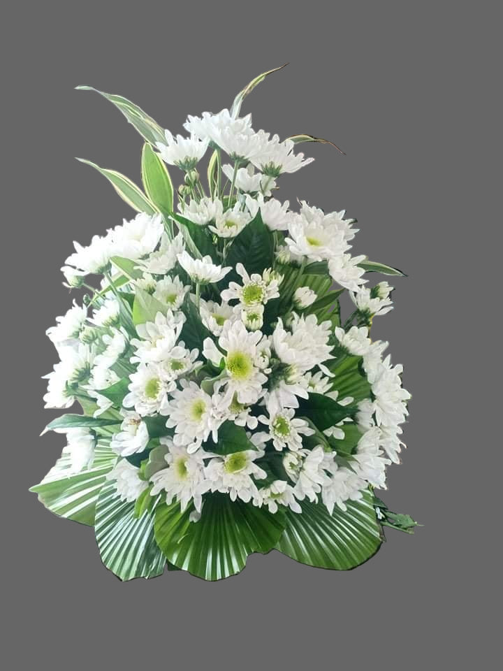 This all-white rado floral arrangement is thoughtfully designed for small tomb decorations. Its pure white tones symbolize remembrance and respect, creating a peaceful and elegant tribute to your loved ones. Perfect for honoring memories with simplicity and grace.