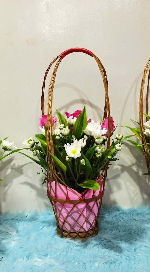 Celebrate cherished memories with the "Undas - Remembering Her" arrangement, featuring elegant white Malaysian mums and soft pink roses beautifully arranged in a traditional tingting basket. This thoughtful combination offers a gentle