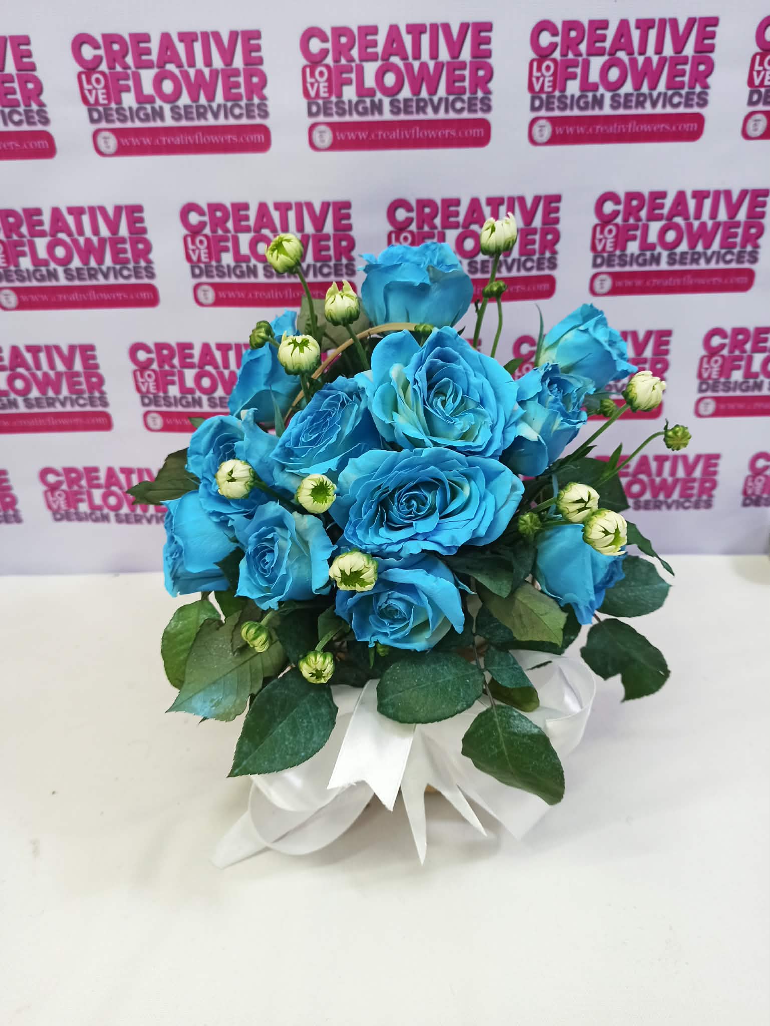 Express your remembrance this Undas with a basket of one dozen blue spray roses. Thoughtfully arranged, these delicate blooms offer a calm and heartfelt tribute, perfect for honoring cherished memories during this special time.