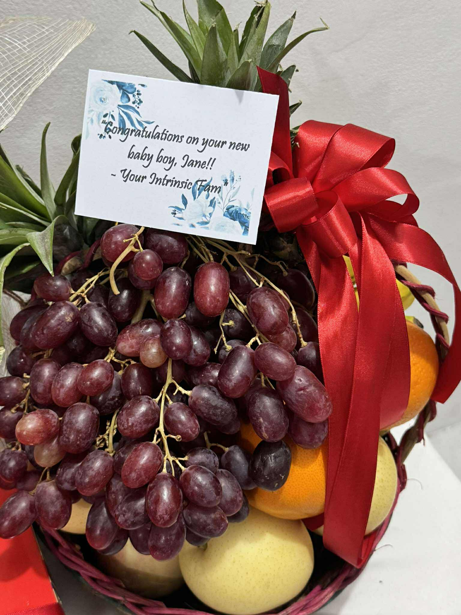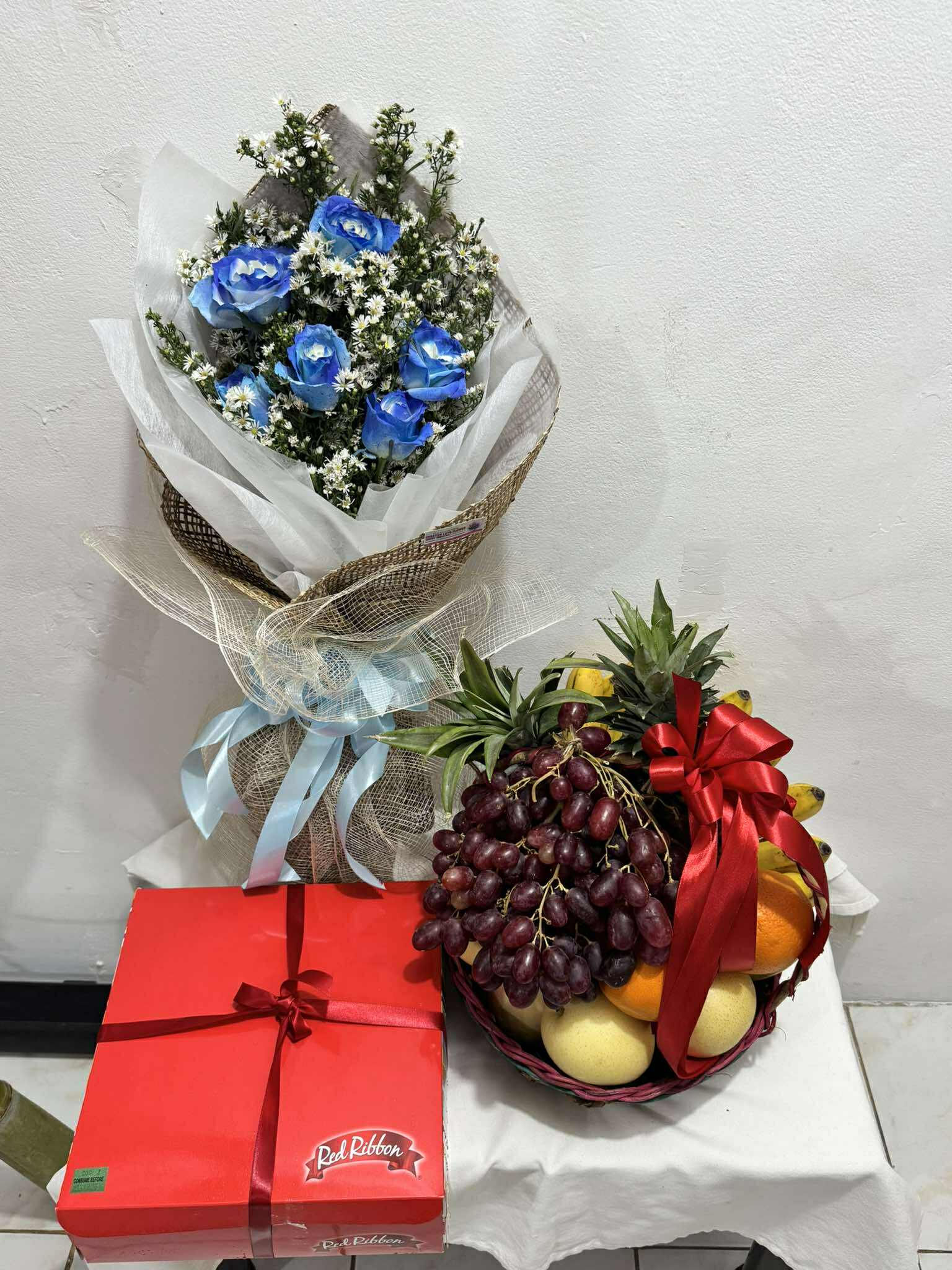 Celebrate the arrival of a baby boy with our Welcoming Baby Boy gift set! This set includes a fruit basket, a beautiful bouquet of 6 blue spray roses, a dedication cake from either Red Ribbon or Goldilocks, and a free message card. Give the gift of warmth and love to the new parents and their little one.