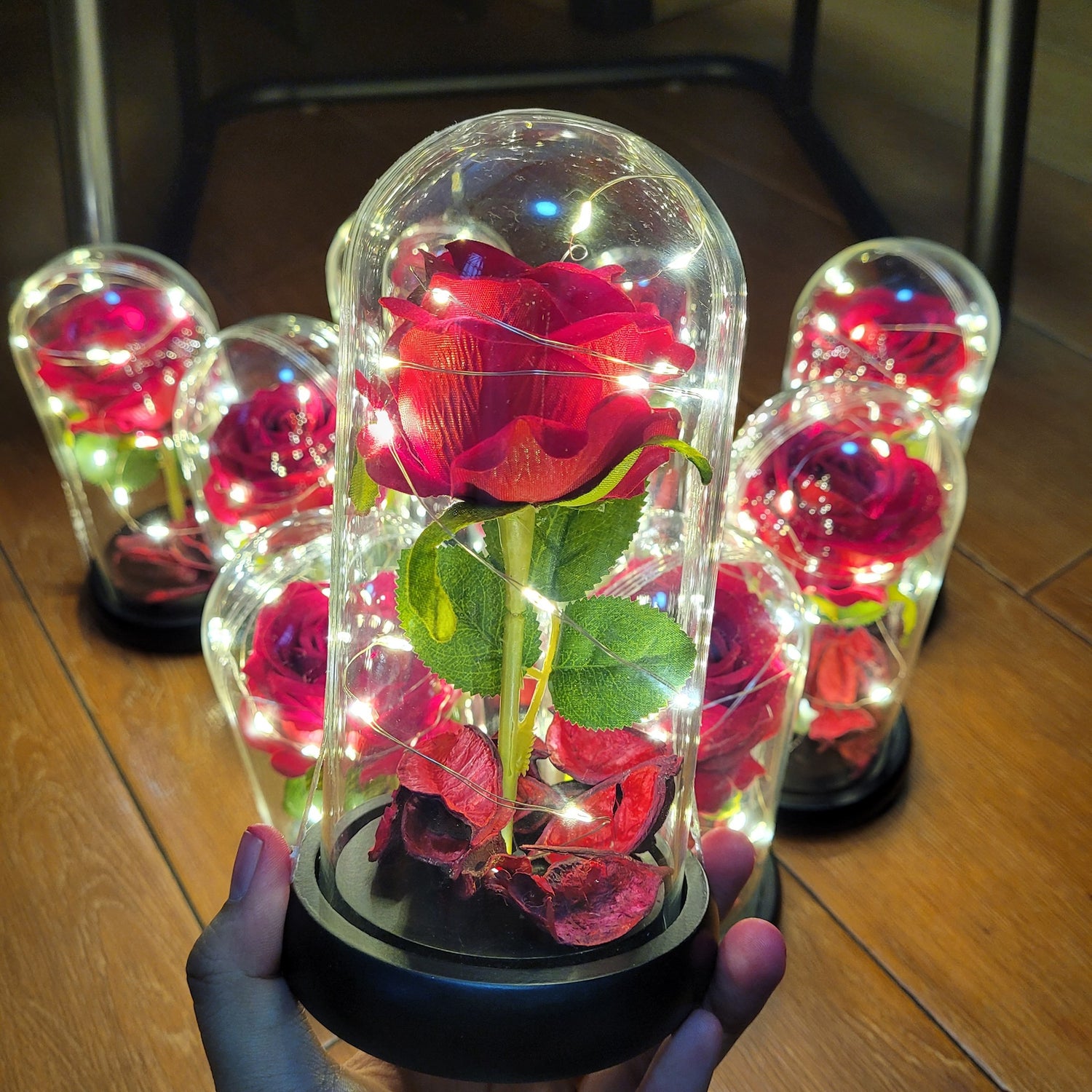 Experience the timeless beauty and elegance of our Red Glass Dome Rose Collection—a stunning tribute to romance and enchantment.